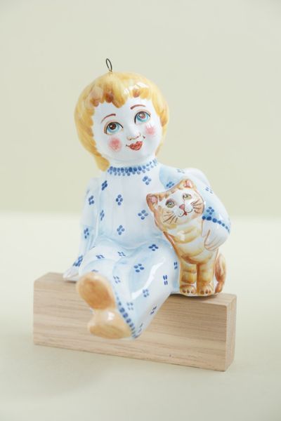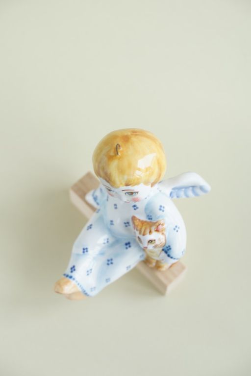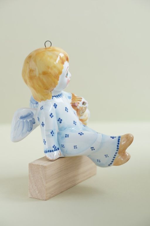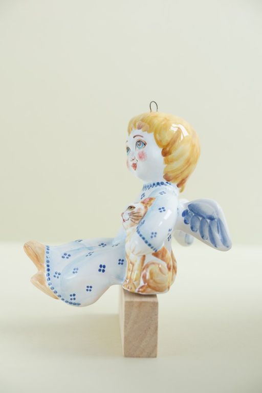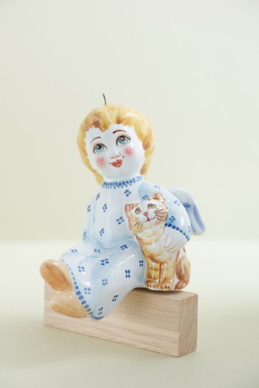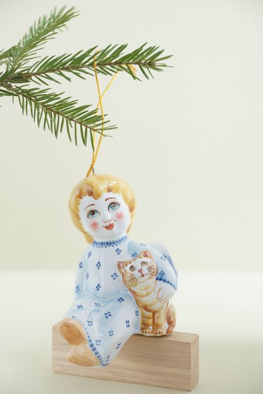 Яркая ёлочная игрушка "Ангел с котёнком".