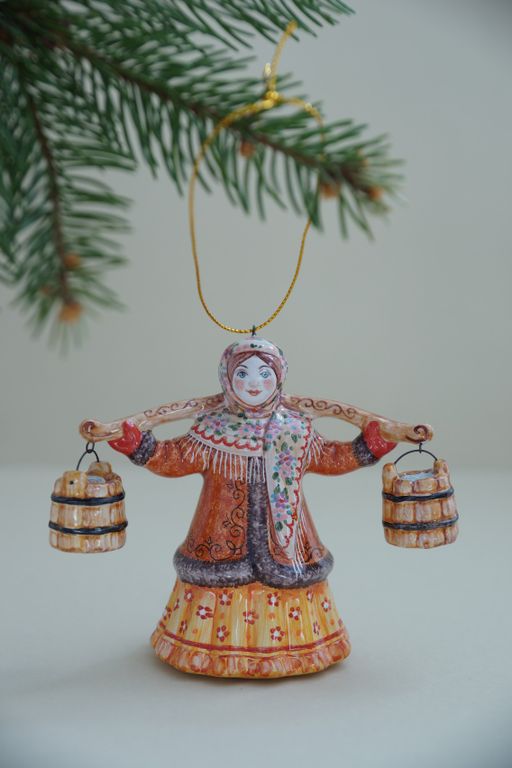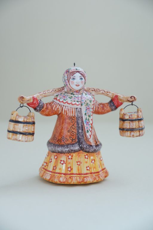 Баба с ведрами - яркая красивая ёлочная игрушка.