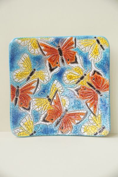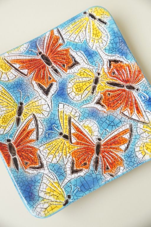 Красивая декоративная настенная тарелка с изображением бабочек.