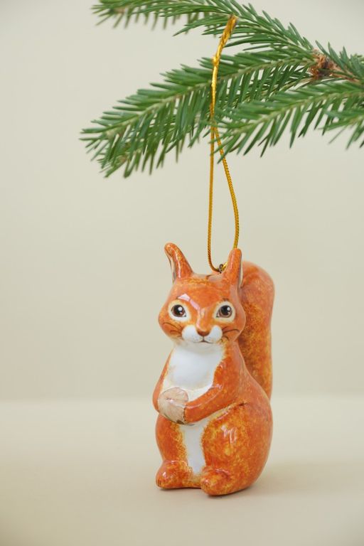 Яркая красивая ёлочная игрушка в виде симпатичной белочки.