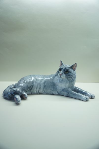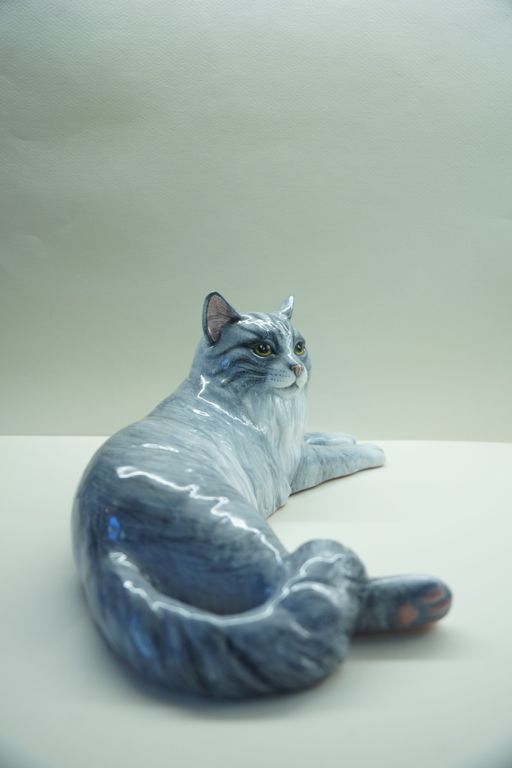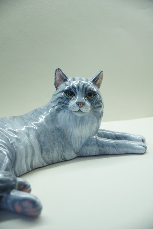Красивая майоликовая фигура очаровательной большой кошечки.