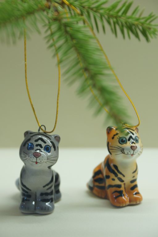 Яркий красивый ёлочный набор из двух веселых тигрят.