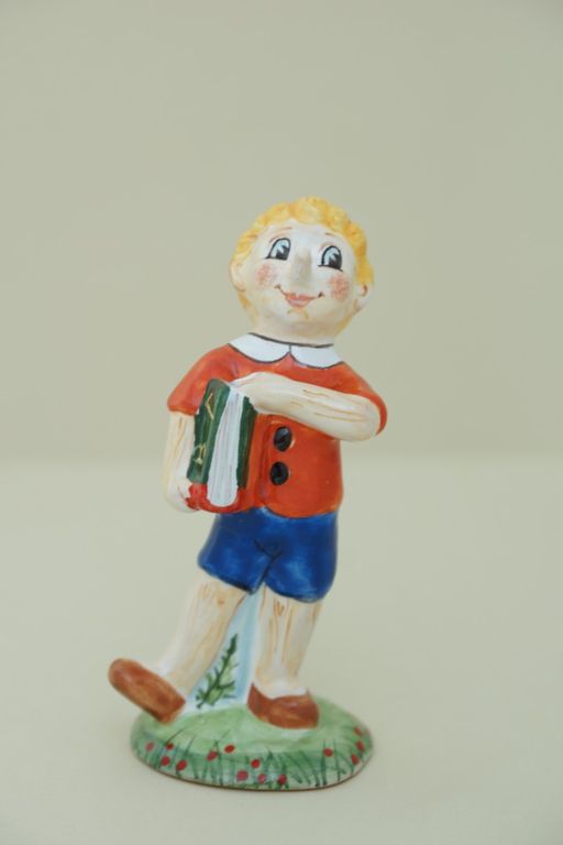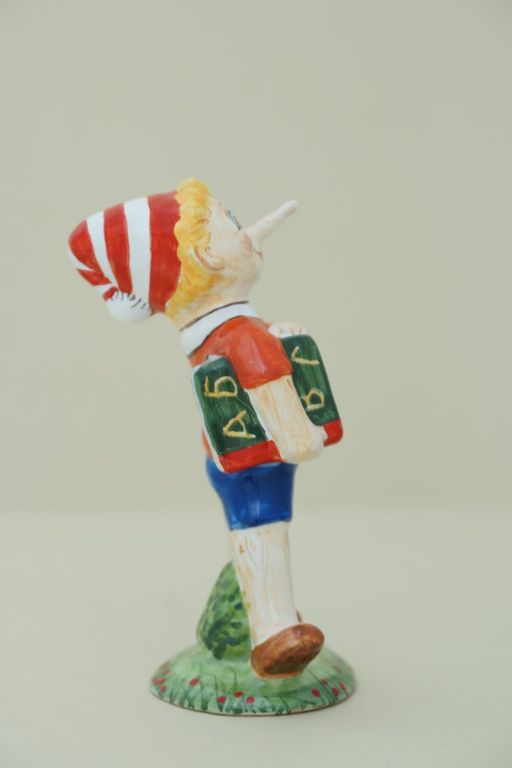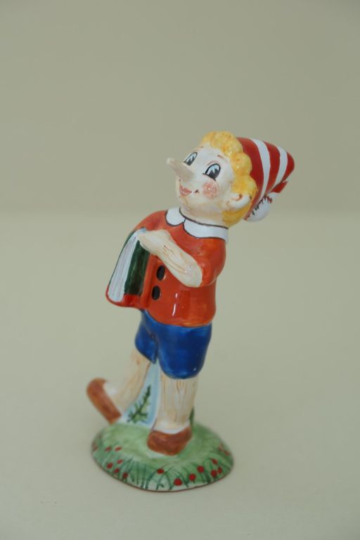 Яркая майоликовая фигура известного сказочного героя не всегда говорящего правду - Буратино.