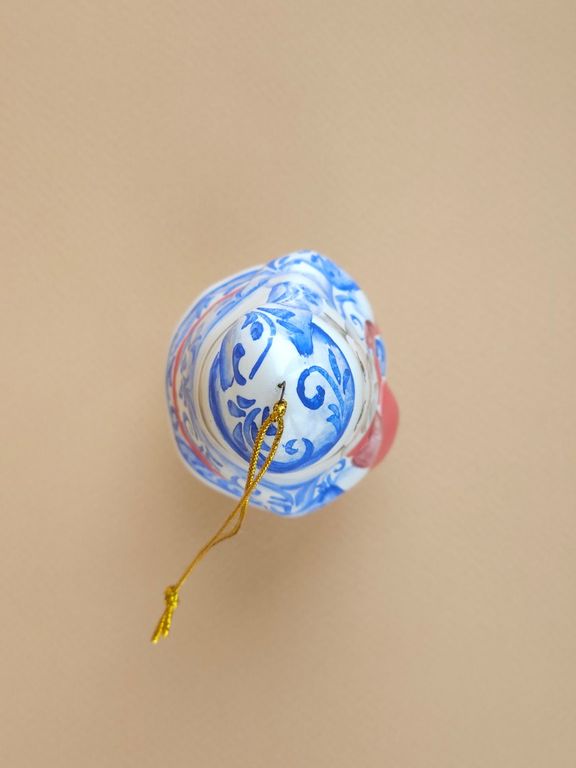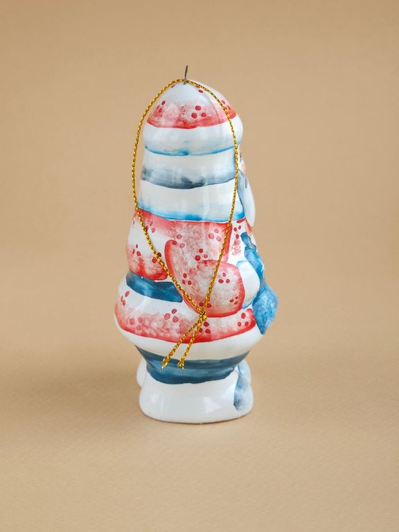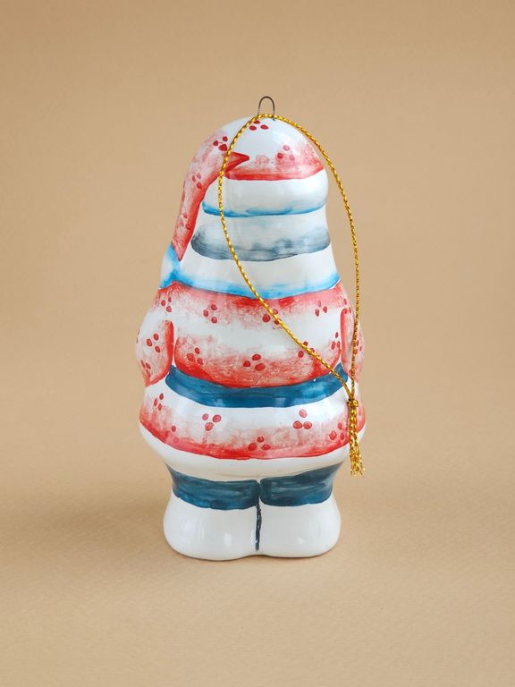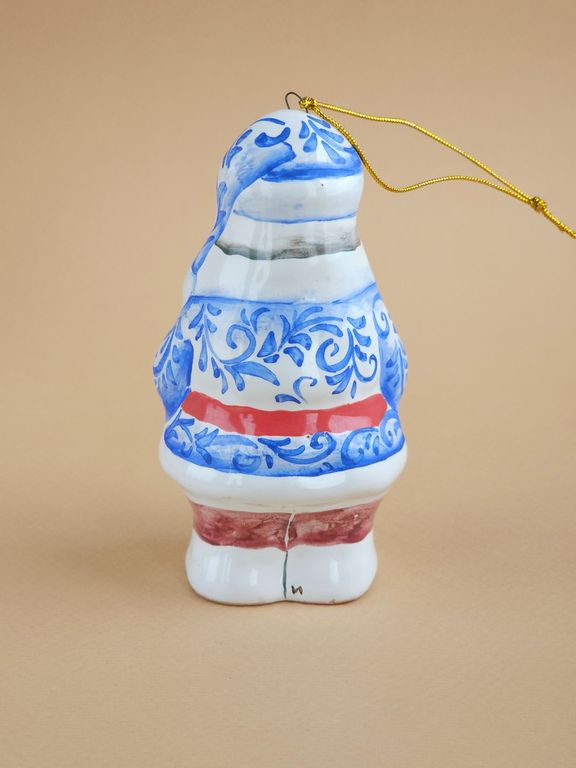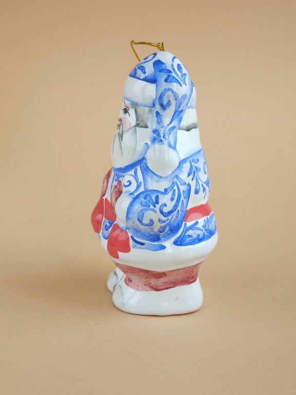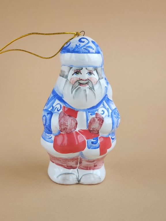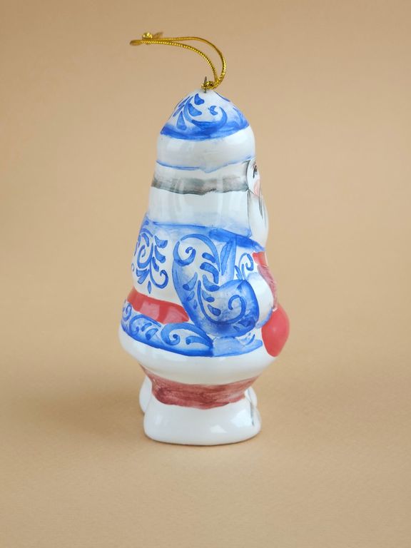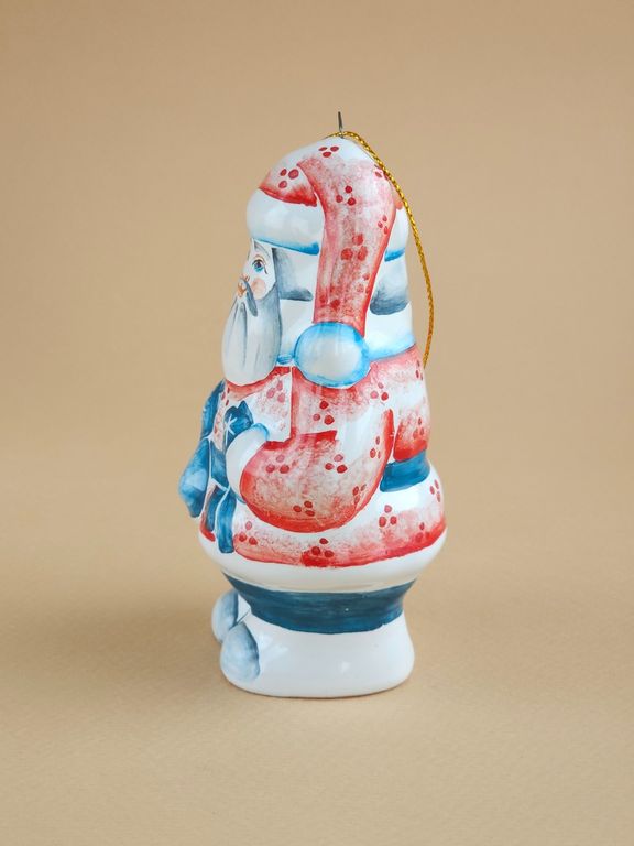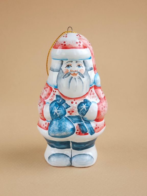 Дедушка Мороз - майоликовый колокольчик в виде известного сказочного героя дедушки мороза с мешком подарков, несущего радость и веселье всем детям на белом свете.
