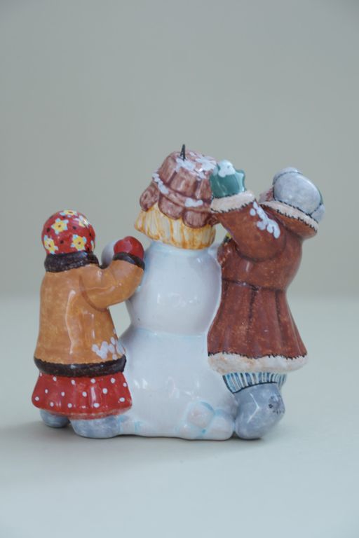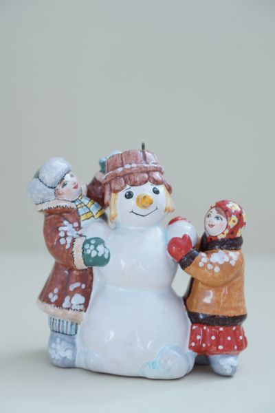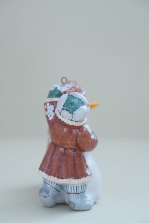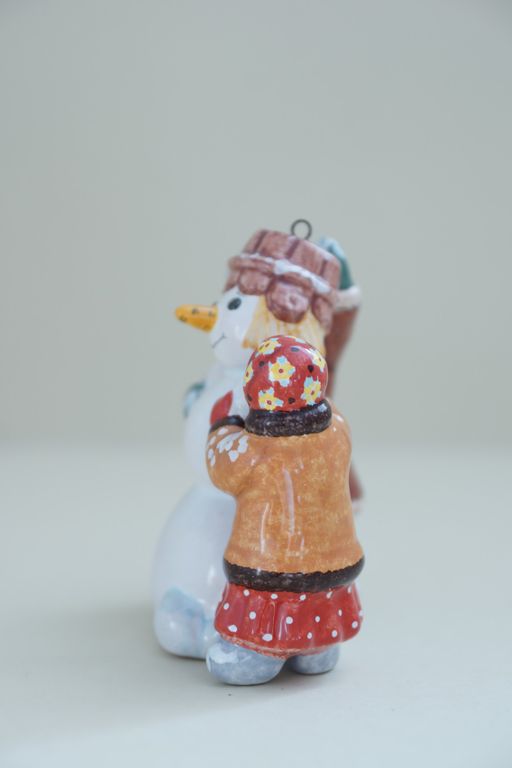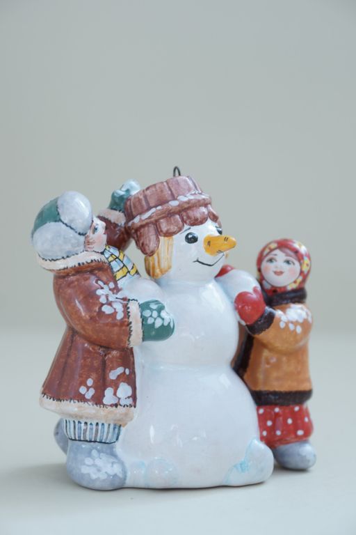 Дети лепят снеговика - яркая красивая ёлочная игрушка.