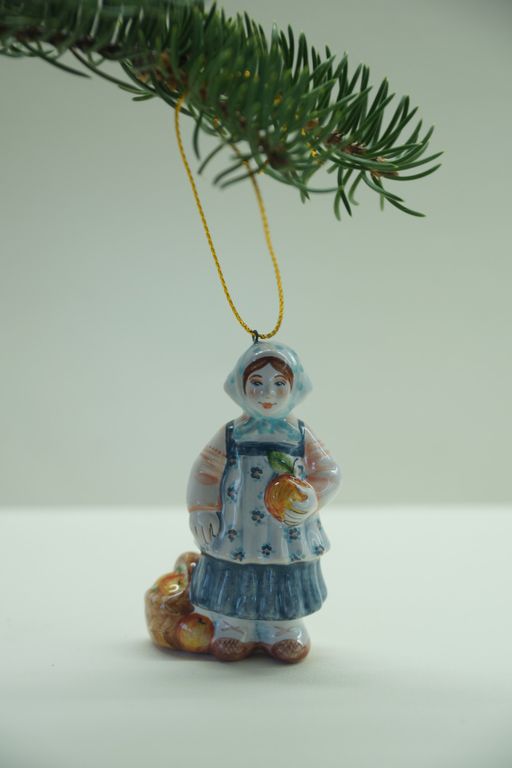 Девочка с яблоками - яркая красивая ёлочная игрушка.