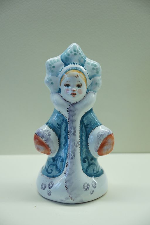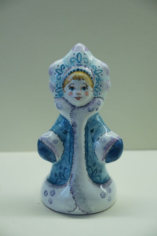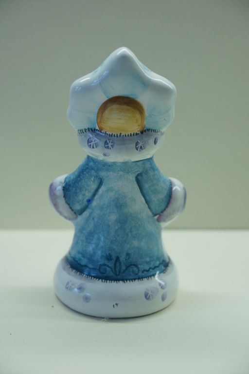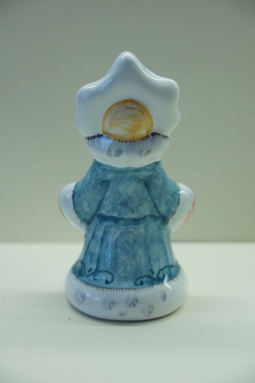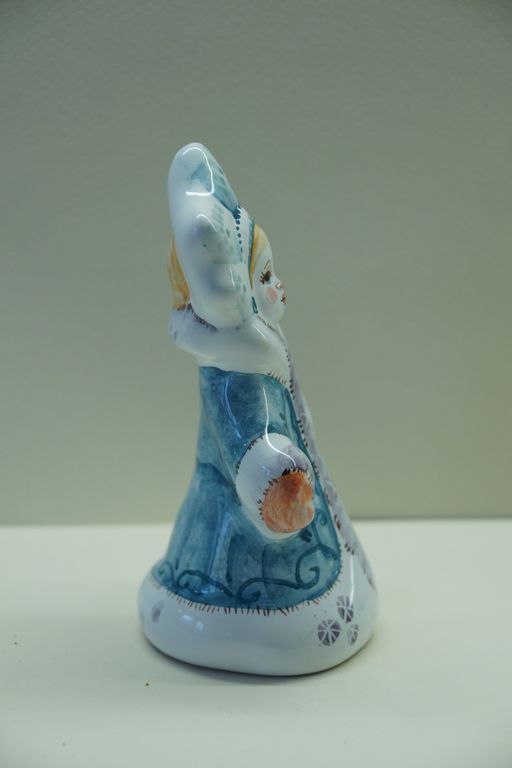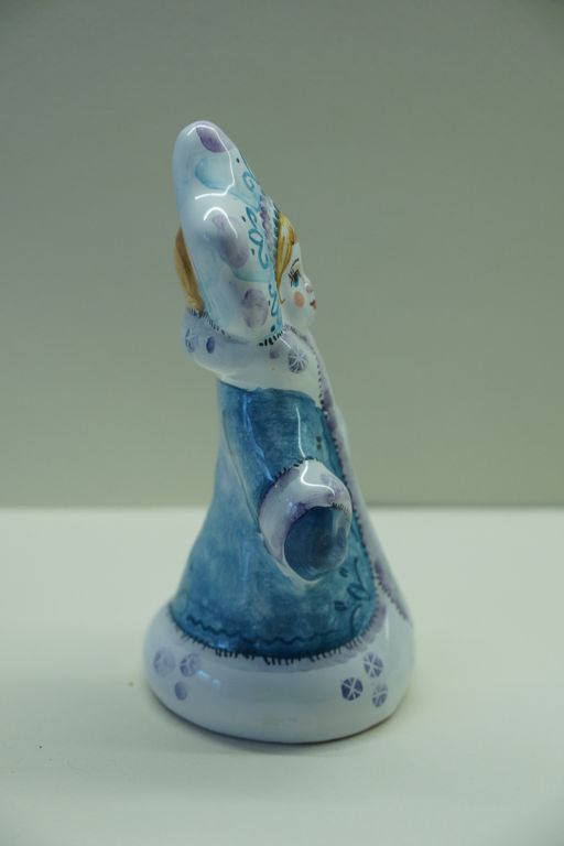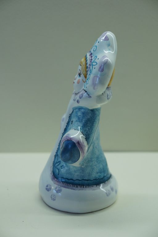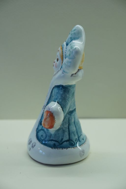Девочка Снегурочка - майоликовый колокольчик в виде снежной девчушки красавицы.
