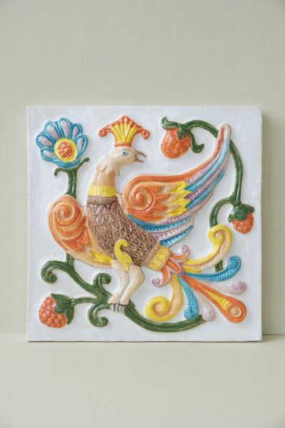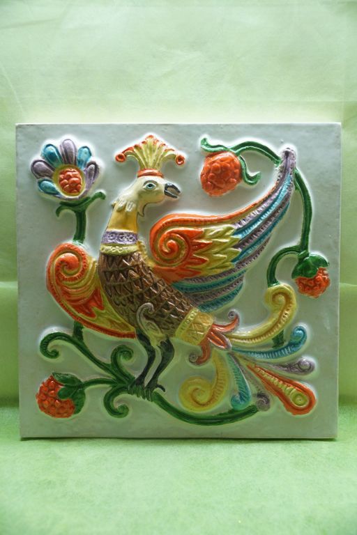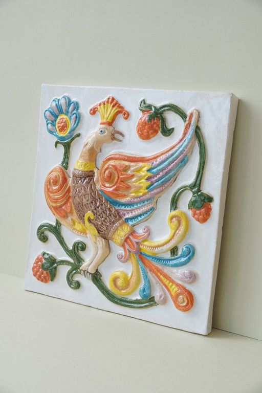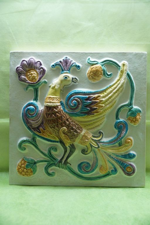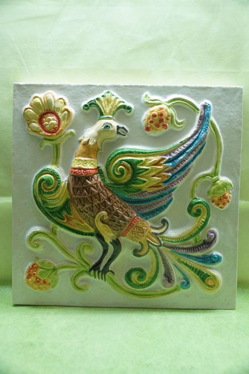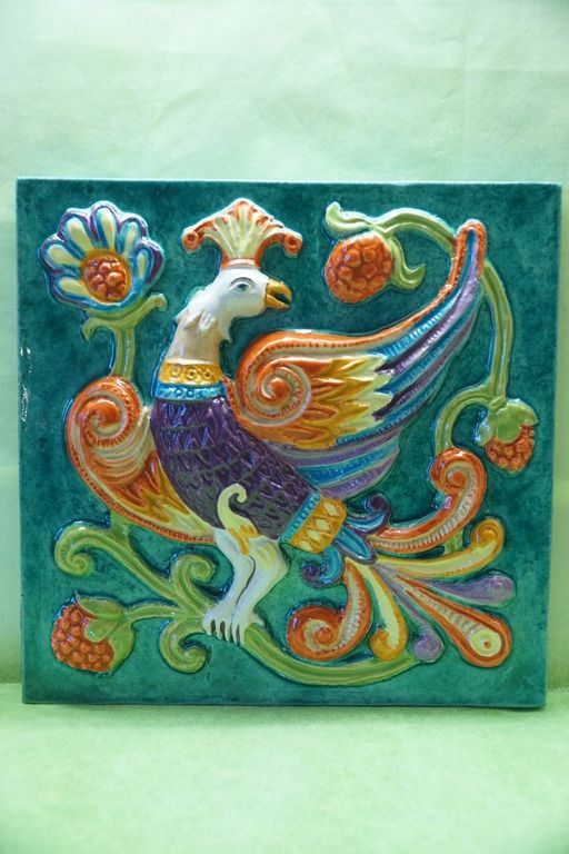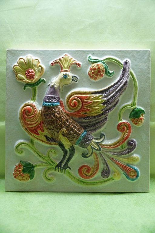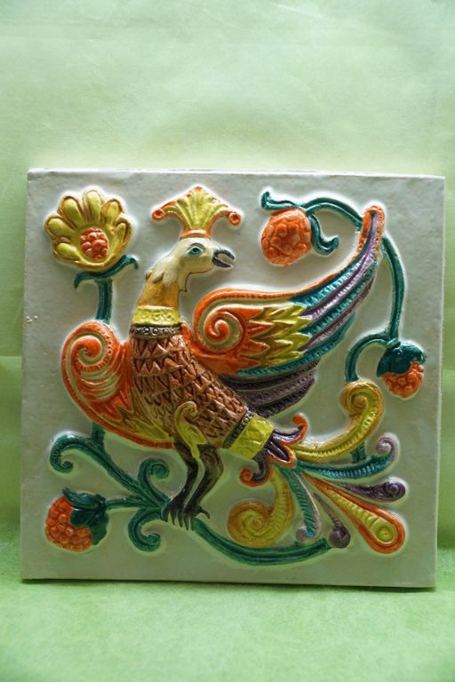 Дивная птица - фасадный цветной изразец из серии "Древние символы".
