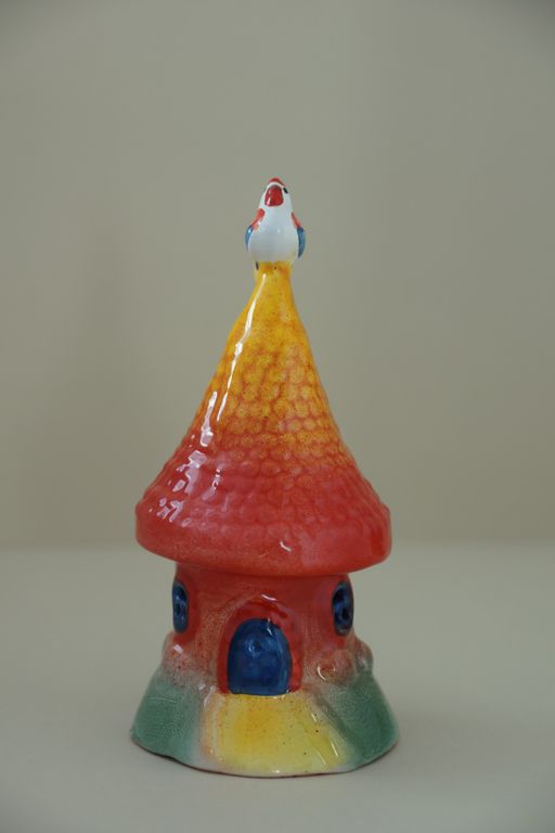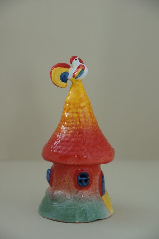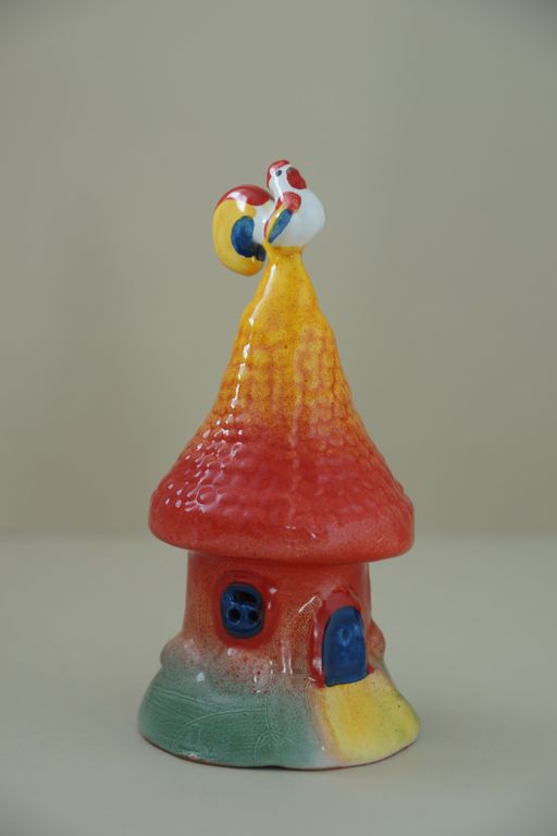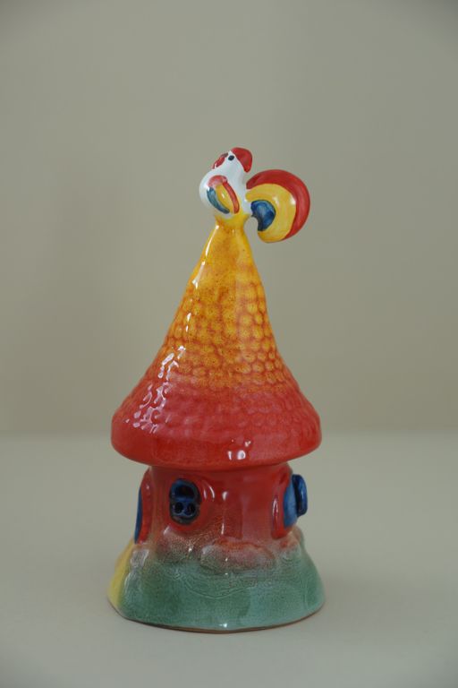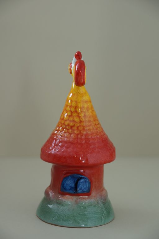 Интересный майоликовый колокольчик "Домик с петушком"