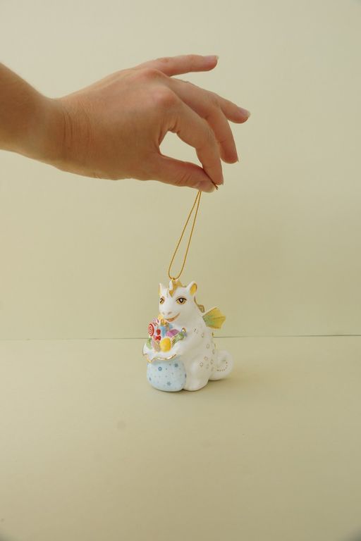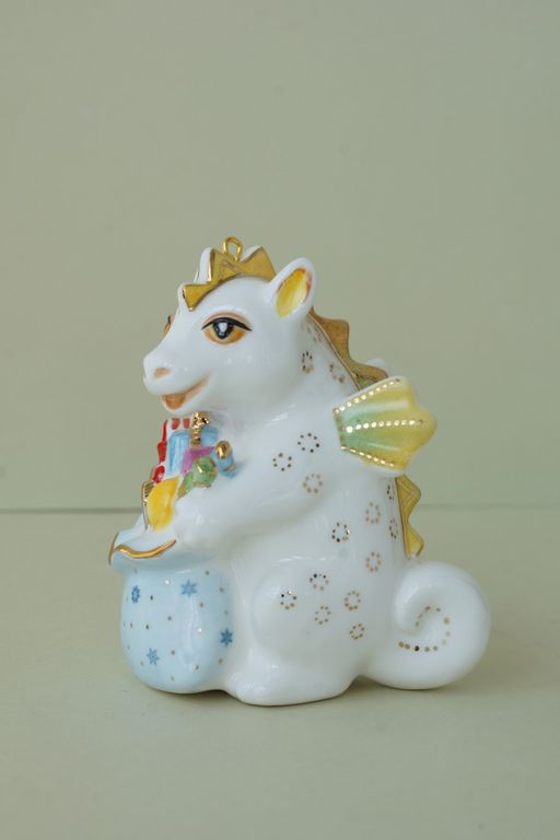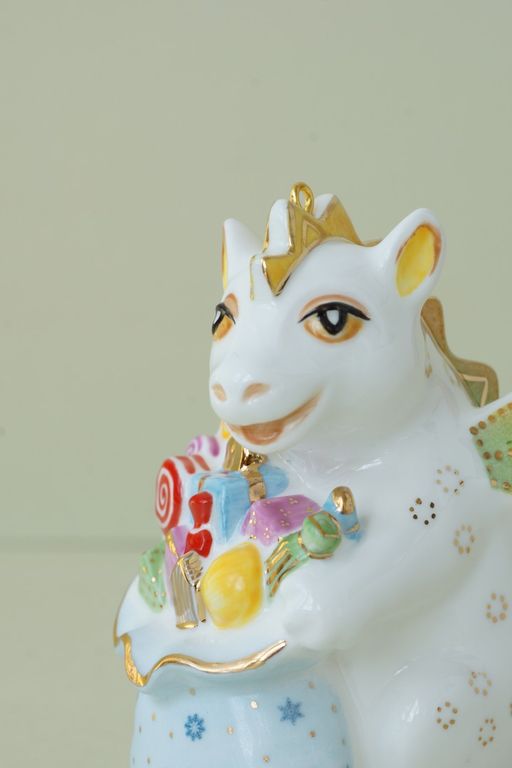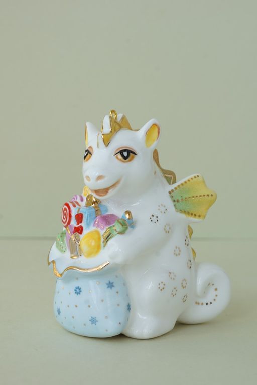 Дракон с мешком подарков - яркая красивая ёлочная игрушка.