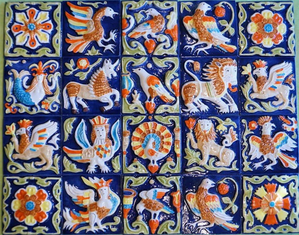 Размер каждой изразцовой плитки 10см на 10см. В 1 кв.м. - 100 шт.