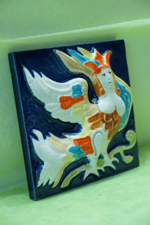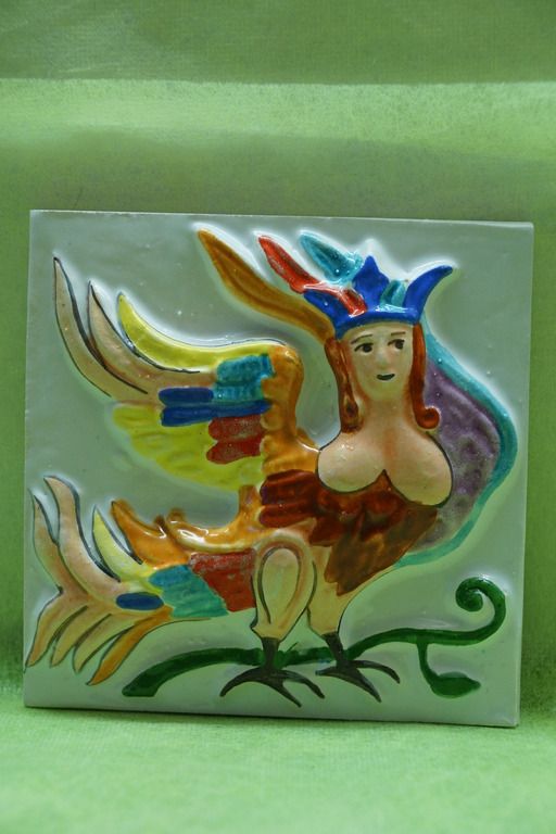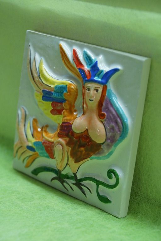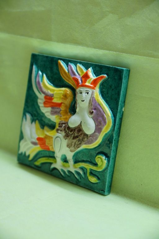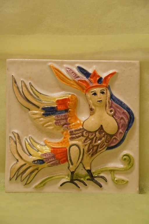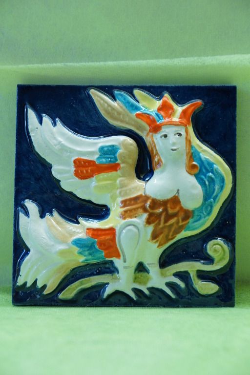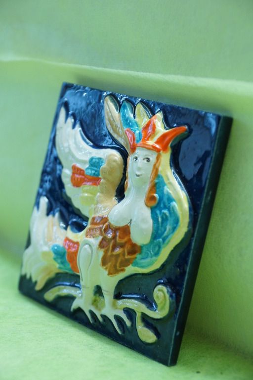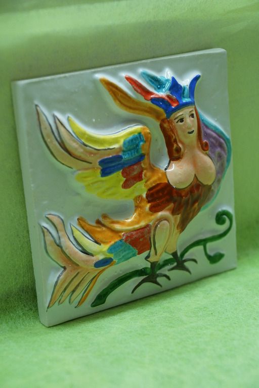 Гамаюн - изразцовая цветная плитка из серии "Древние символы".