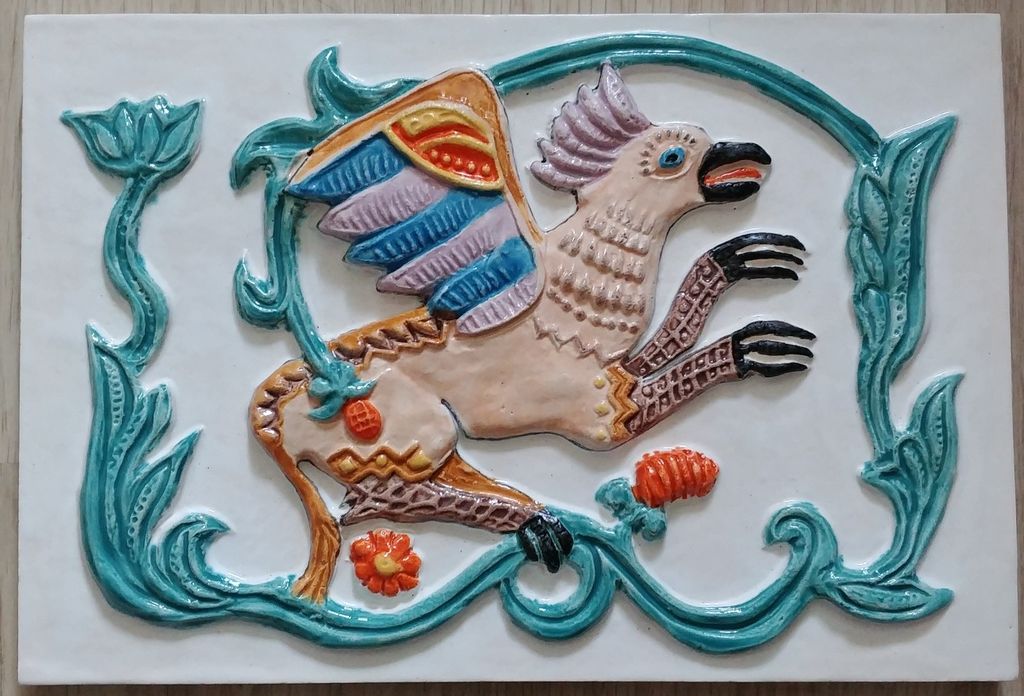 Грифон - фасадный цветной изразец из серии "Древние символы".