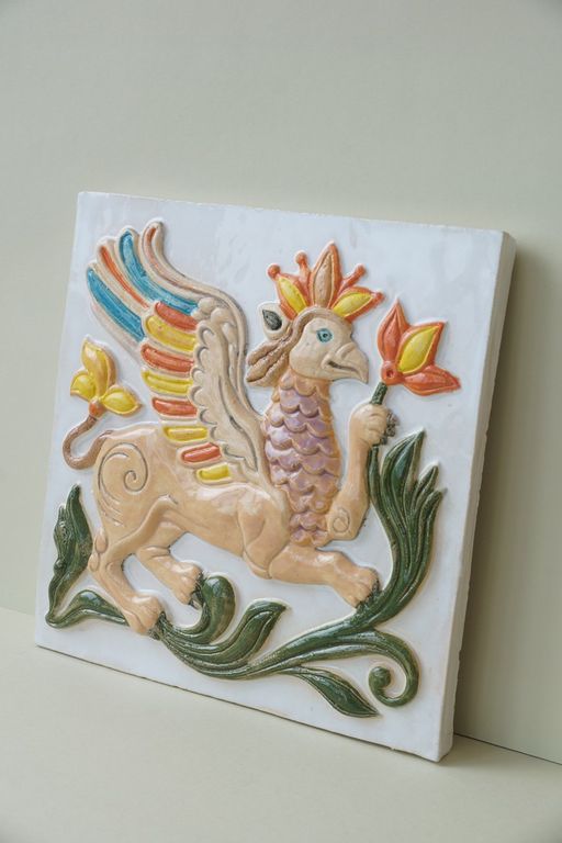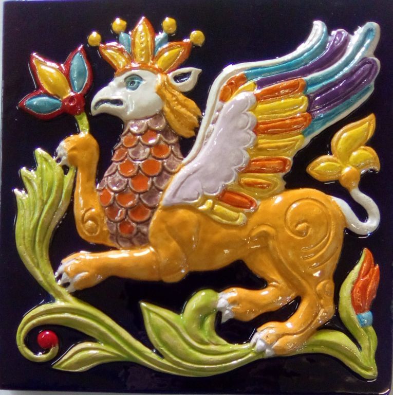 Грифон - фасадный цветной изразец из серии "Древние символы".