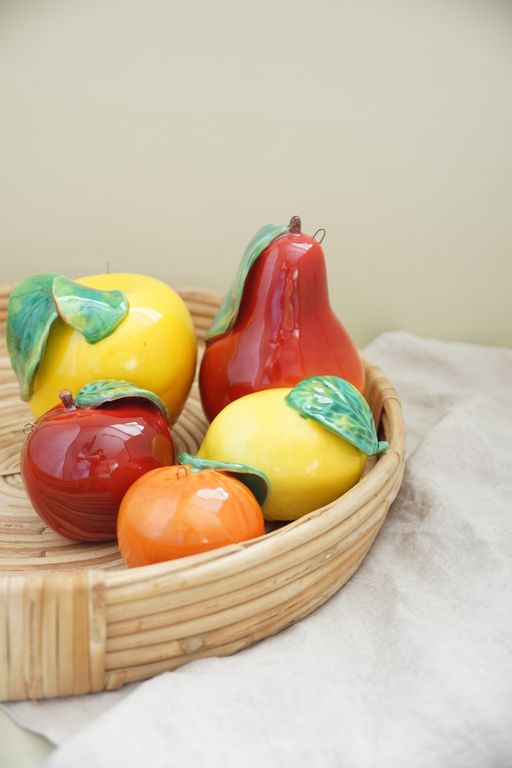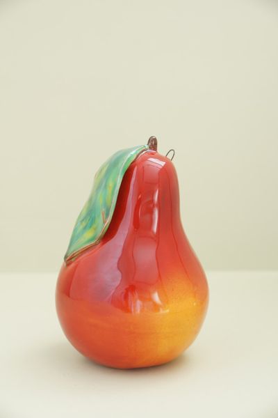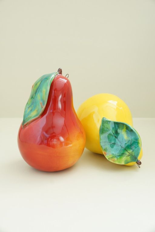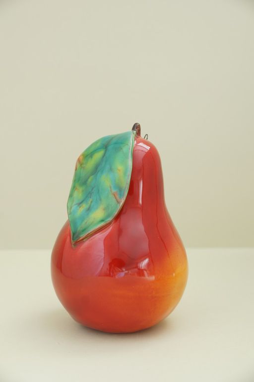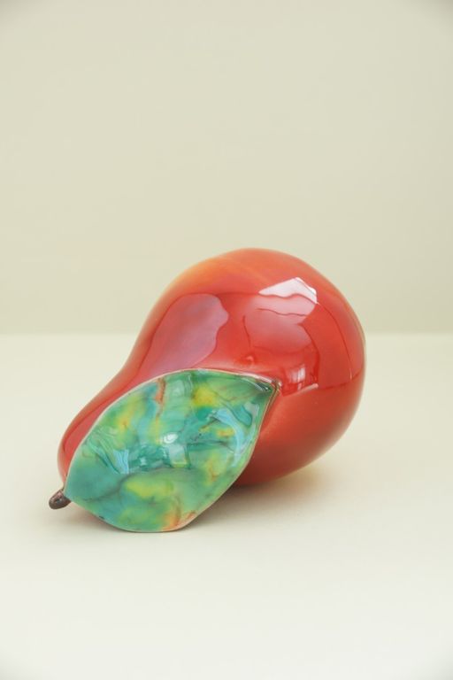 Красивый керамический фрукт - груша с листом.