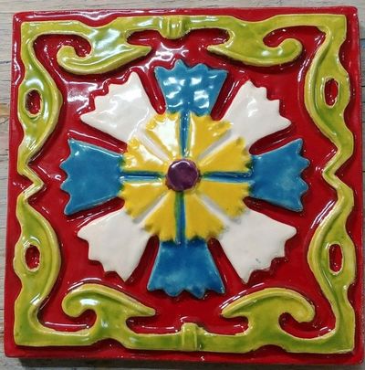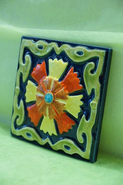 Гвоздика - изразцовая цветная плитка из серии "Древние символы".