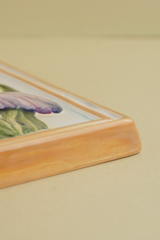 | Изделия изготовлены в технике майолика. Этапы изготовления: лепка из красной или белой глины, утельный обжиг при высоких температурах, покрытие белой глазурью, индивидуальная художественная роспись, заключительные обжиги. | |