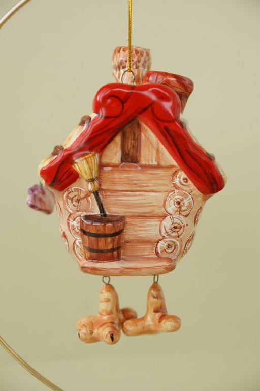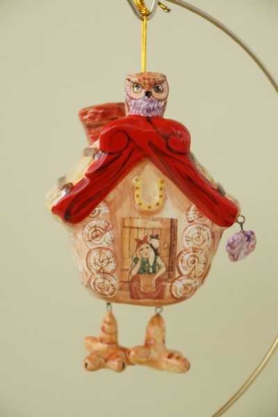 Необычная ёлочная игрушка в виде избушки Бабы-Яги.