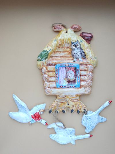 Яркое красивое панно - Избушка-Иванушка, с подвесами.