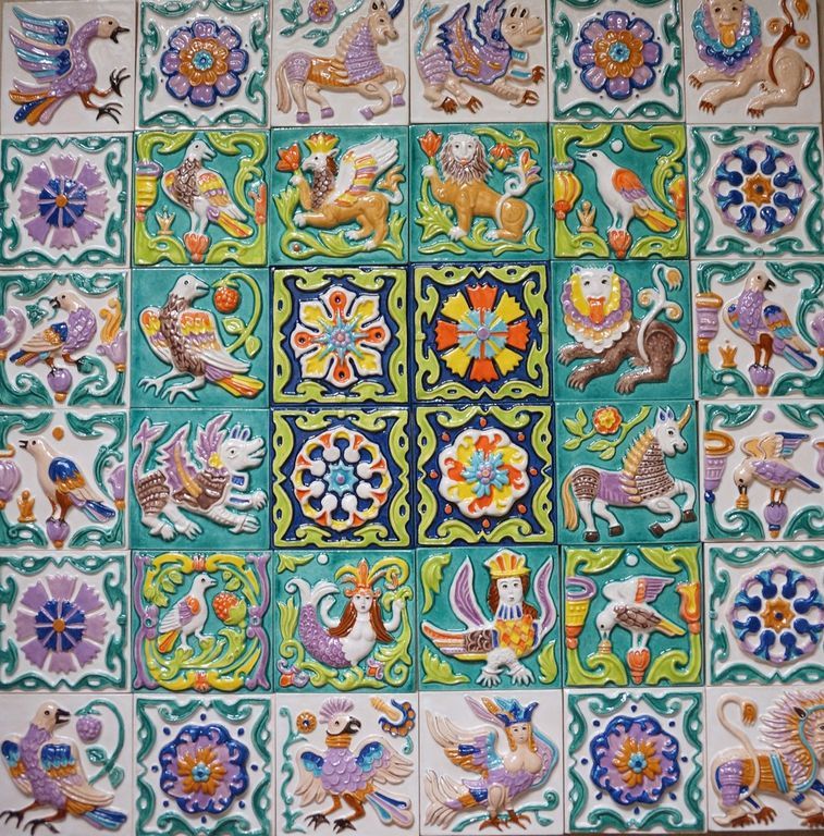 Изразцовое цветное панно "Древние символы".