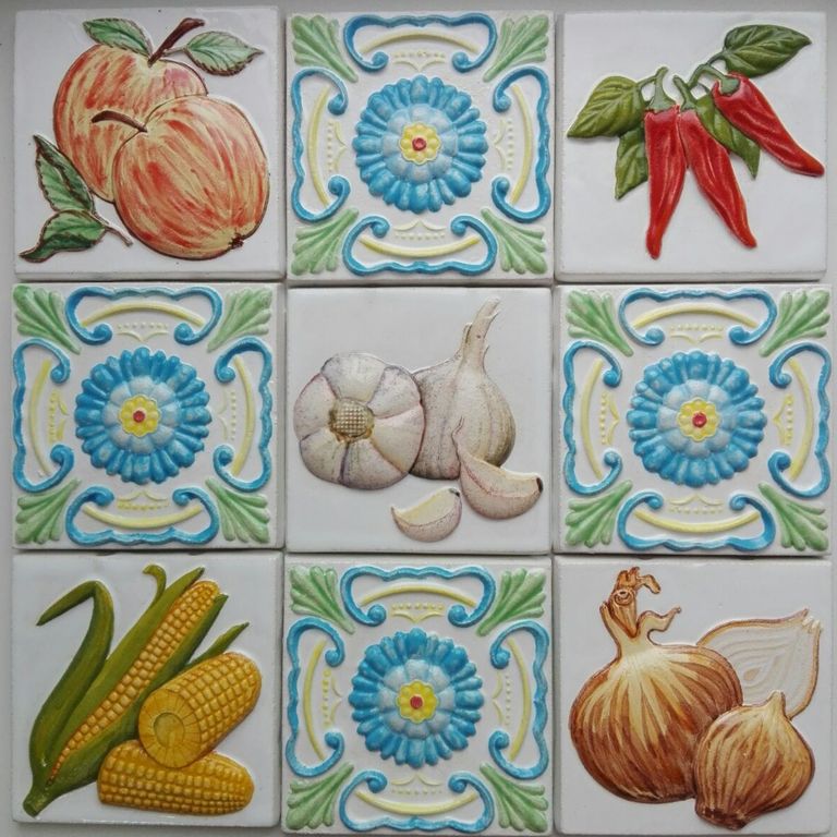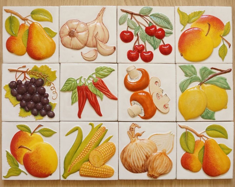 На каждом изразце изображен определенный овощ или фрукт.