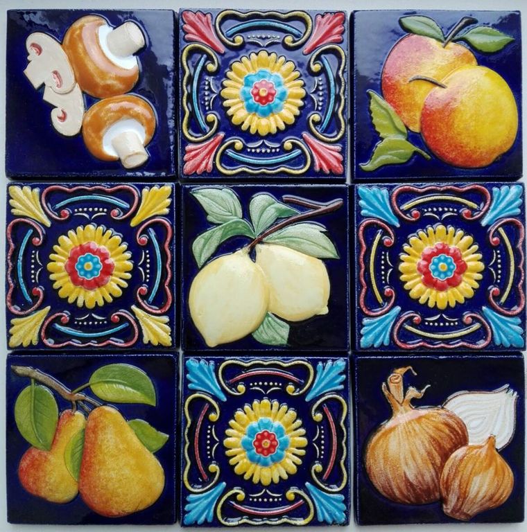 Изразцовая цветная плитка из серии "Дары сада".