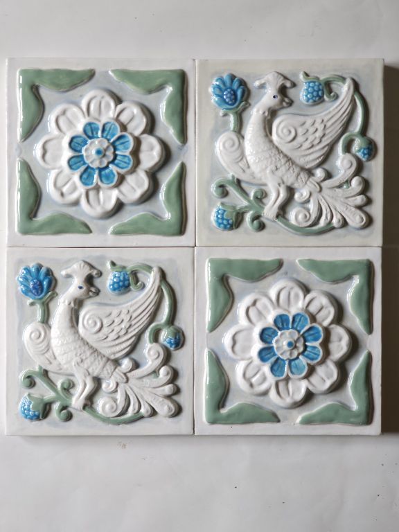 Размер каждой изразцовой плитки 14см на 14см. Толщина 1,5-1,7см. В 1 кв.м. - 51 шт. Всего 10 видов.
