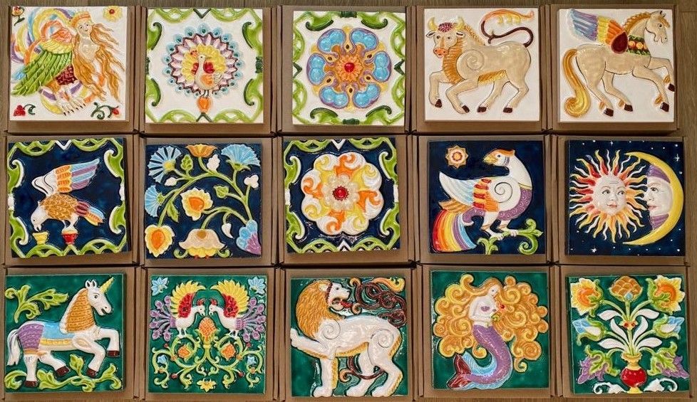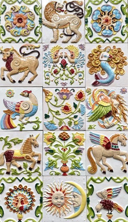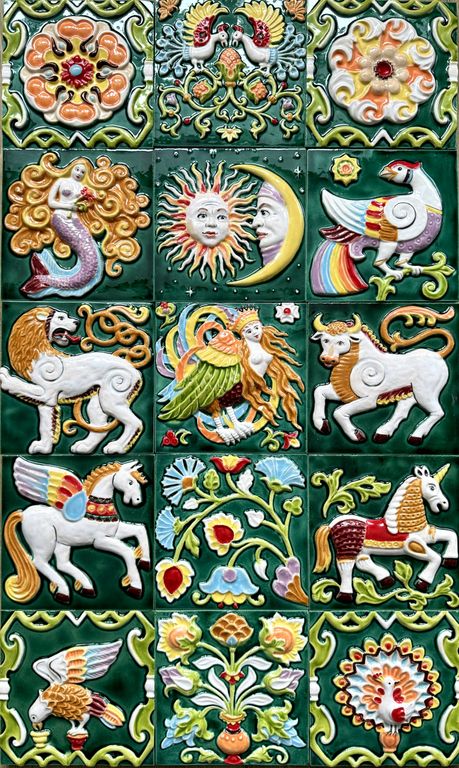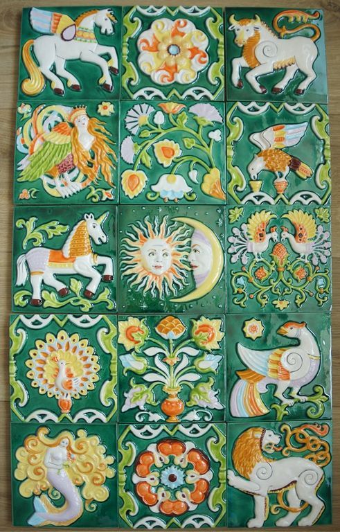 Изразцовая цветная плитка из серии "Мифические знаки".
