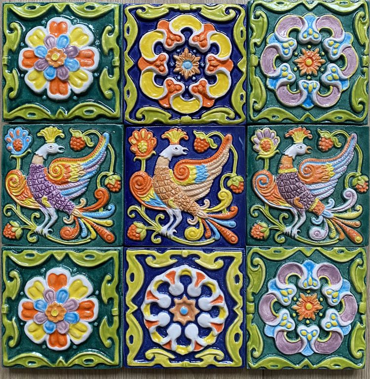 Изразцовое цветное панно "Дивная птица".