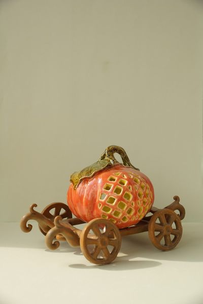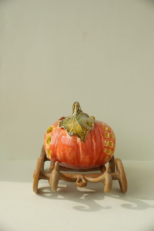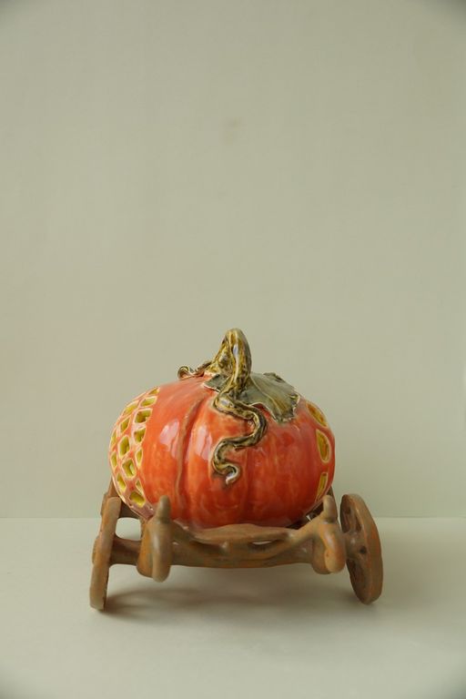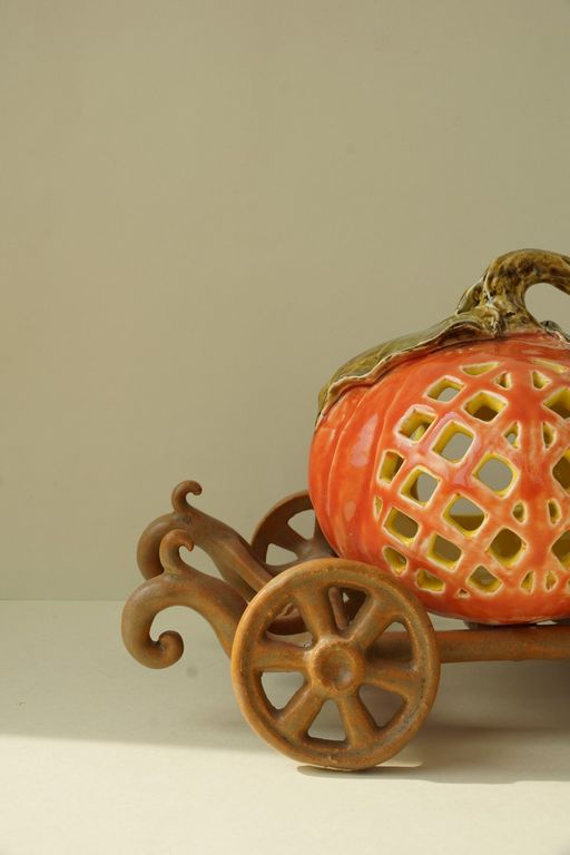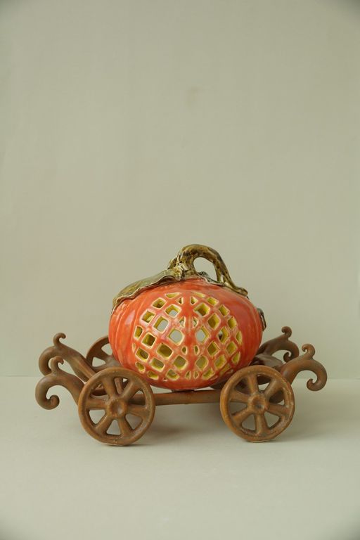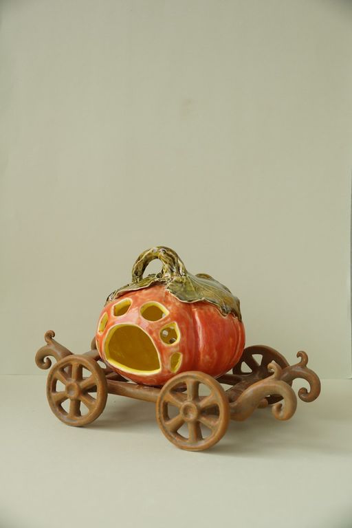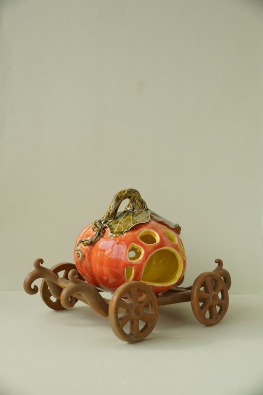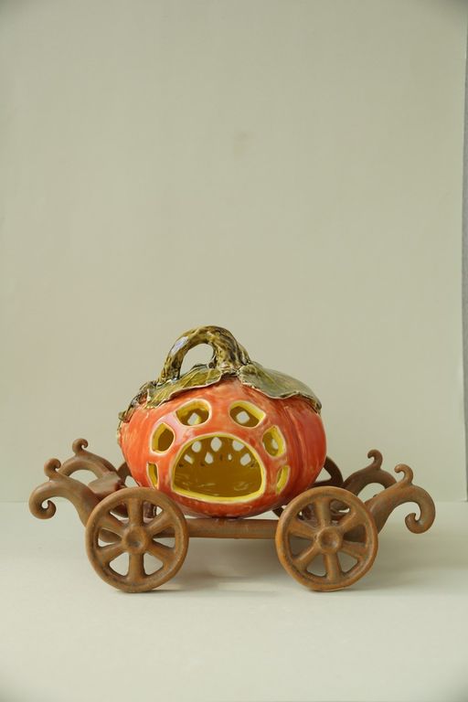 Яркий керамический подсвечник - Карета с тыквой