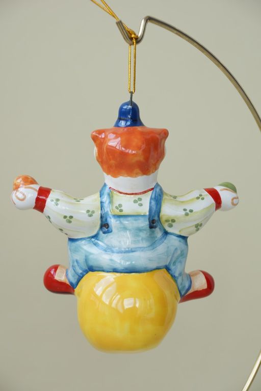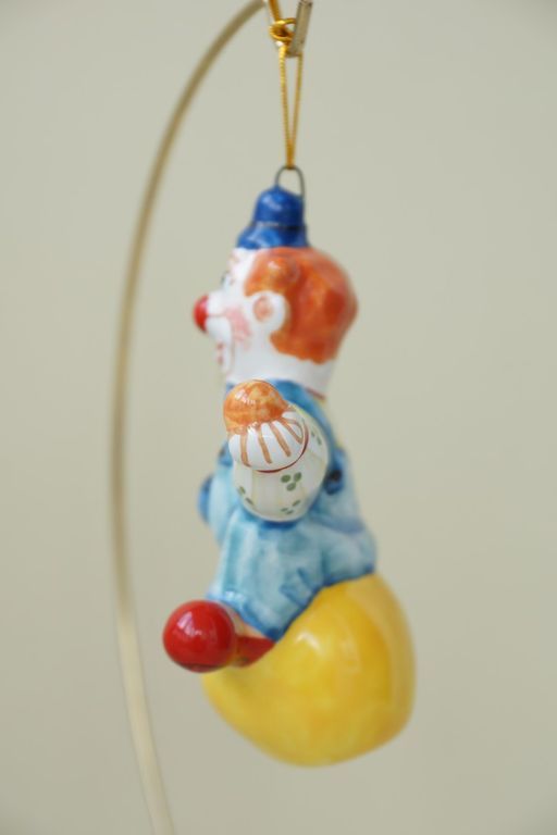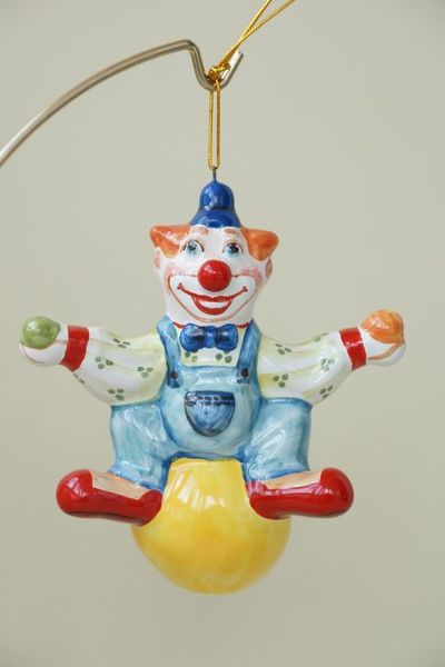 Яркая майоликовая фигурка в виде клоуна на шаре.