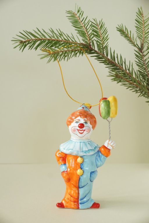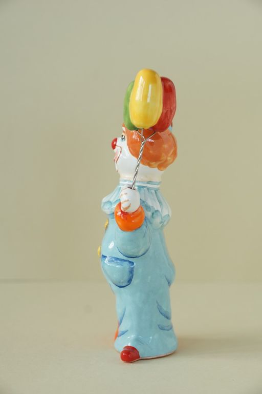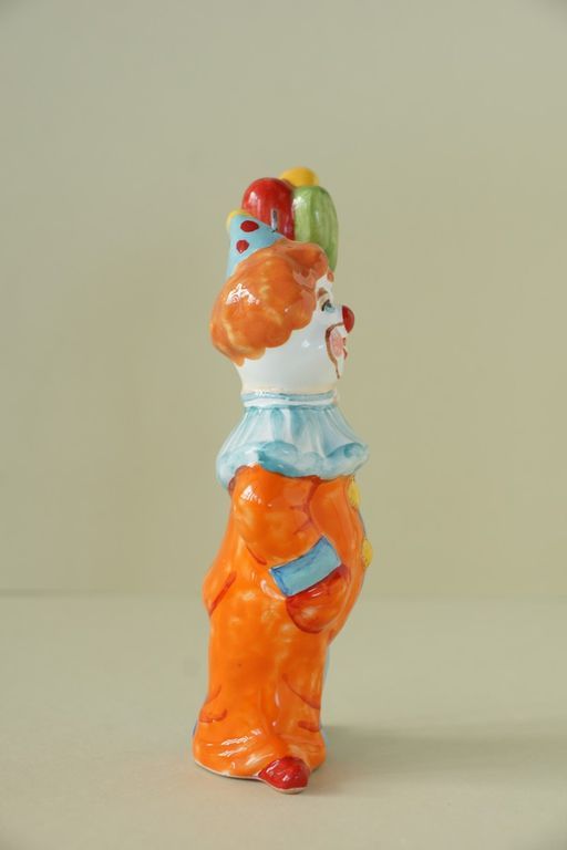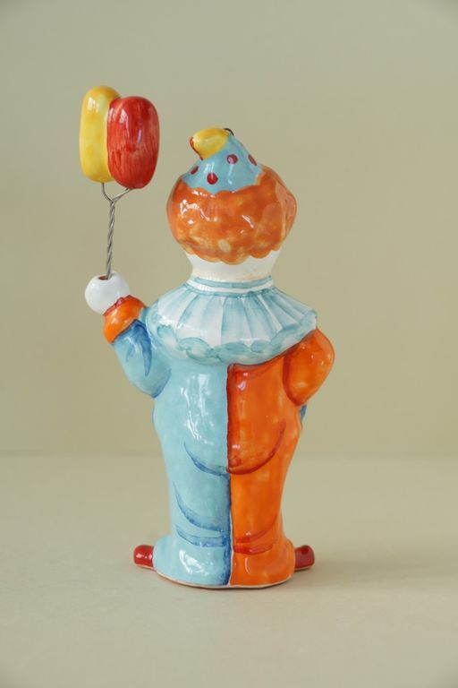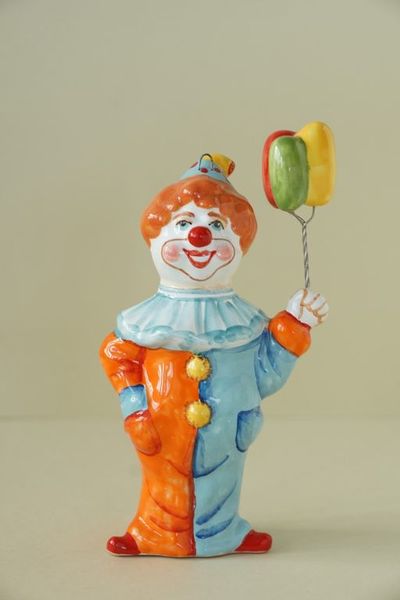 Яркая майоликовая фигурка в виде клоуна с шариками.