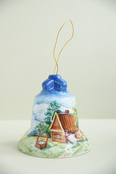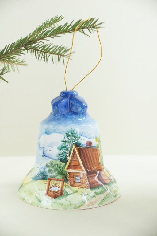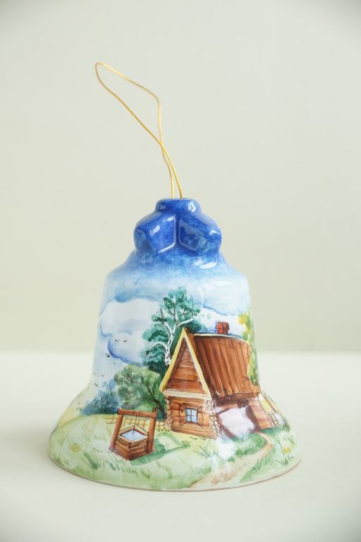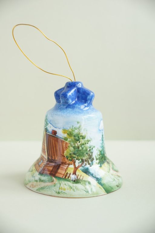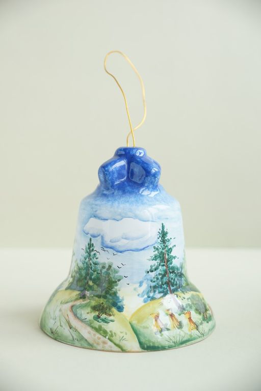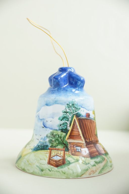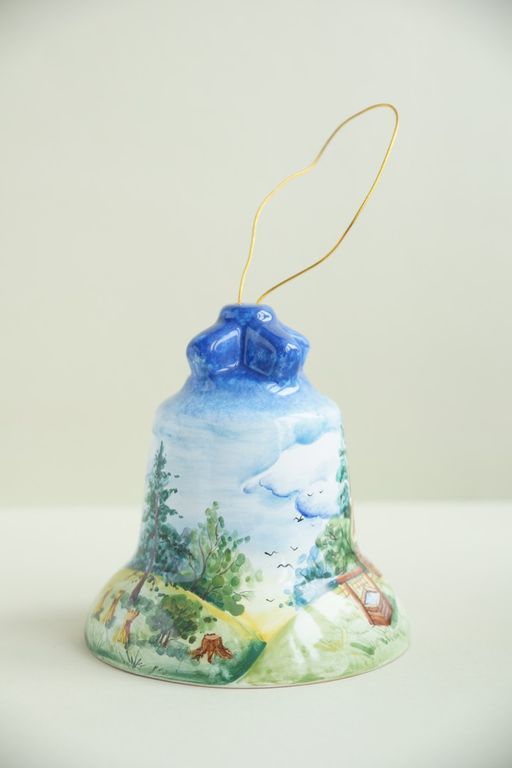 Оригинальный подарок - майоликовый колокольчик "Пейзаж".