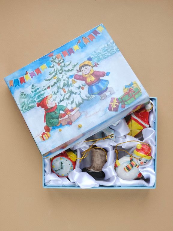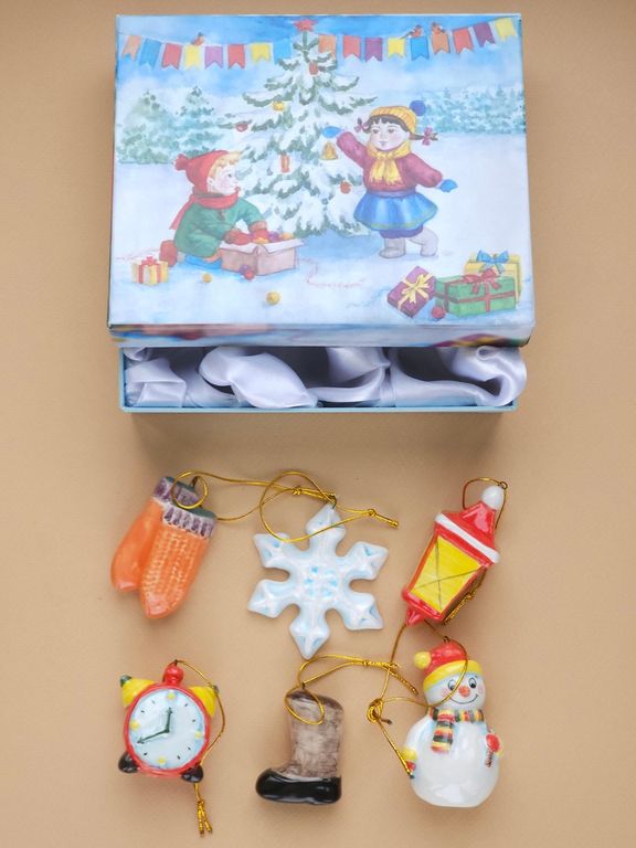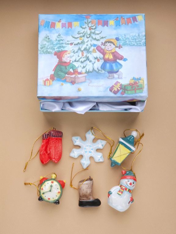 Комплект ёлочных игрушек "Рождественская ночь" в подарочной упаковке.