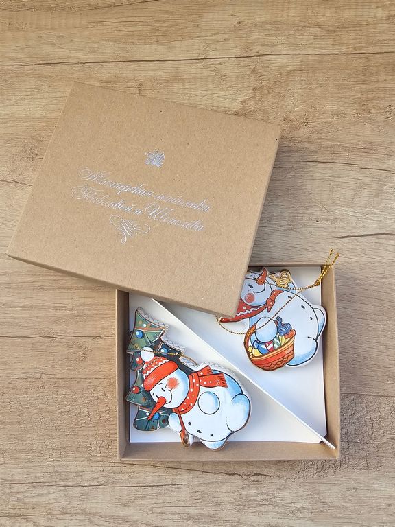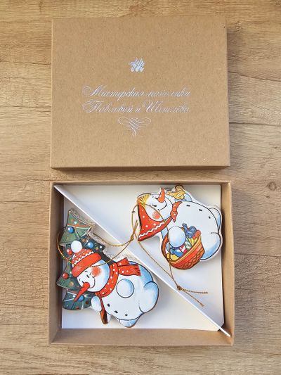 Комплект ёлочных игрушек "Снеговики" в подарочной упаковке.