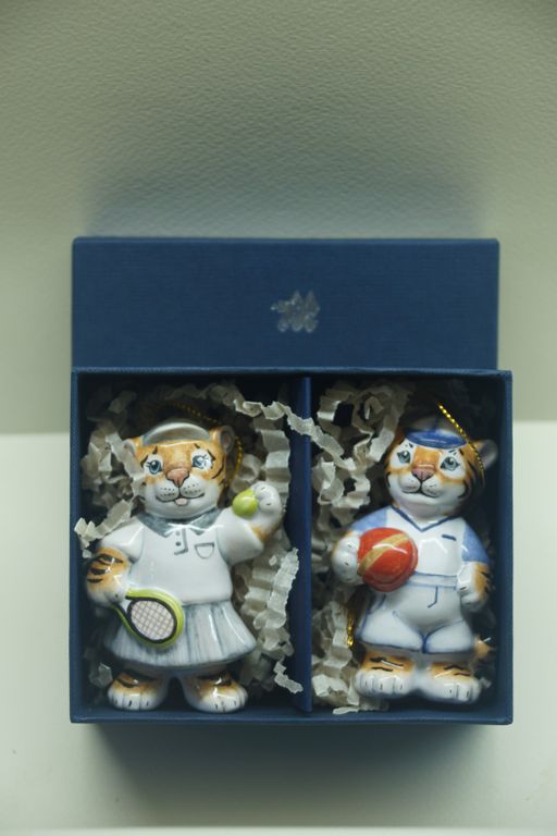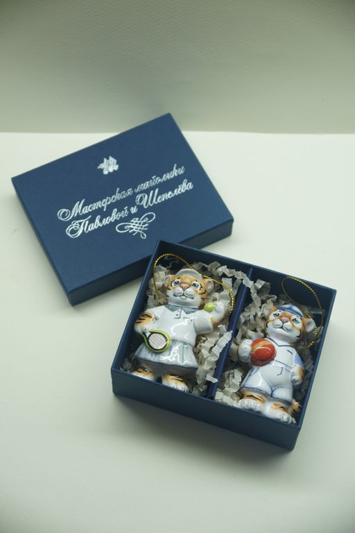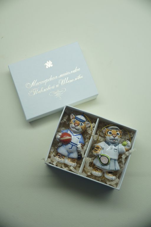 Комплект ёлочных игрушек "Спортивные тигрята" в подарочной упаковке.