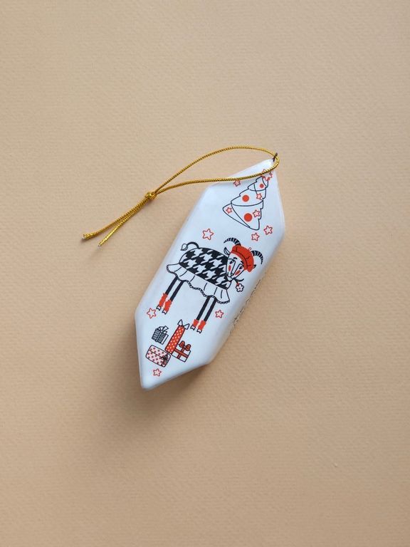 Конфетка "Коза" - яркая керамическая ёлочная игрушка.