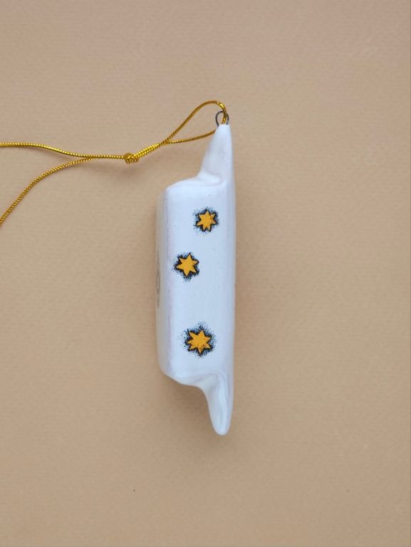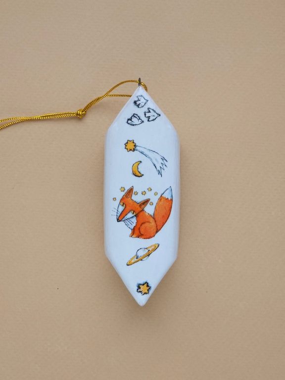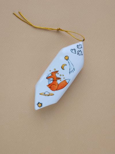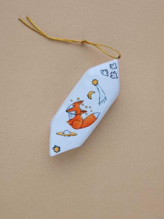 Конфетка "Лис" - яркая керамическая ёлочная игрушка.