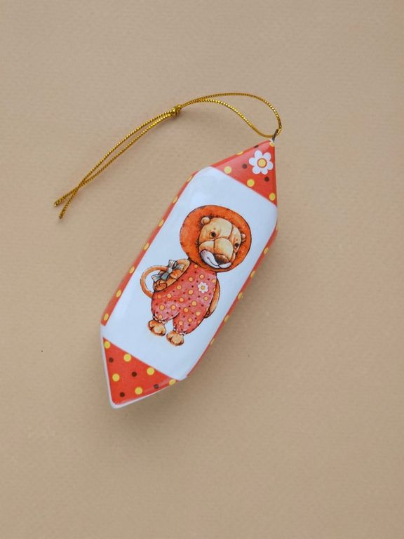 Конфетка "Львёнок" - яркая керамическая ёлочная игрушка.