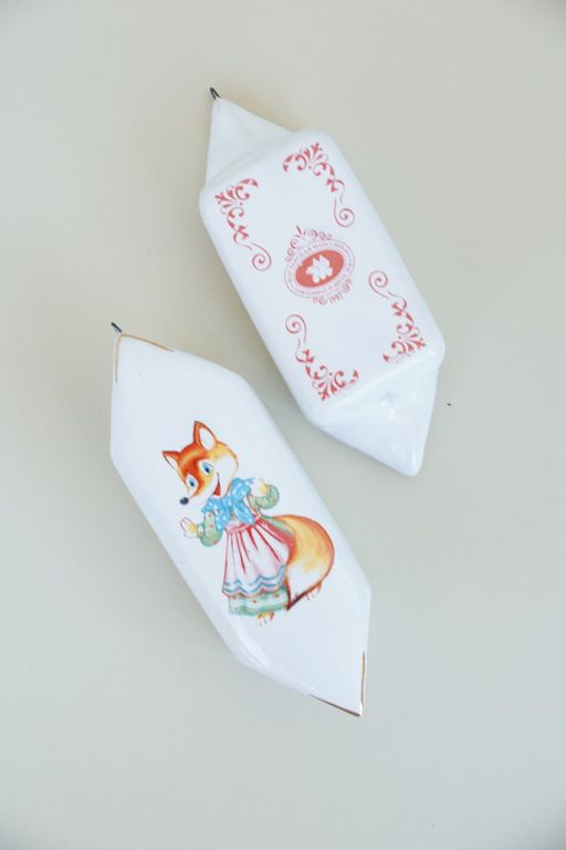 Конфетка "Милая лисица" - яркая керамическая ёлочная игрушка.