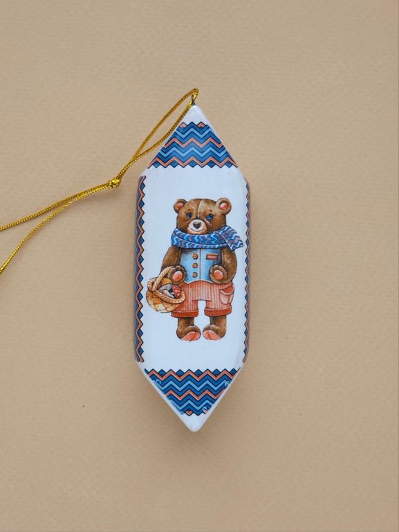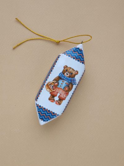 Конфетка "Мишка" - яркая керамическая ёлочная игрушка.