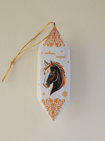 Конфетка "Новогодний мустанг" - яркая керамическая ёлочная игрушка.