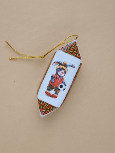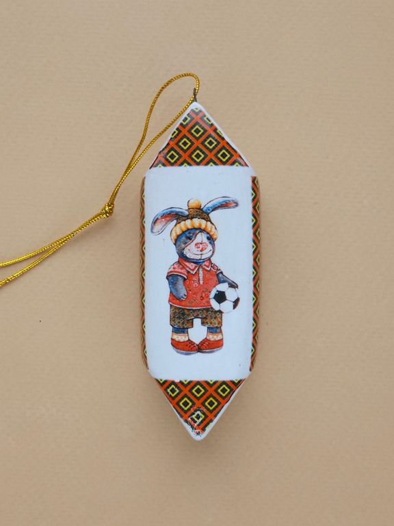Конфетка "Зайчик" - яркая керамическая ёлочная игрушка.