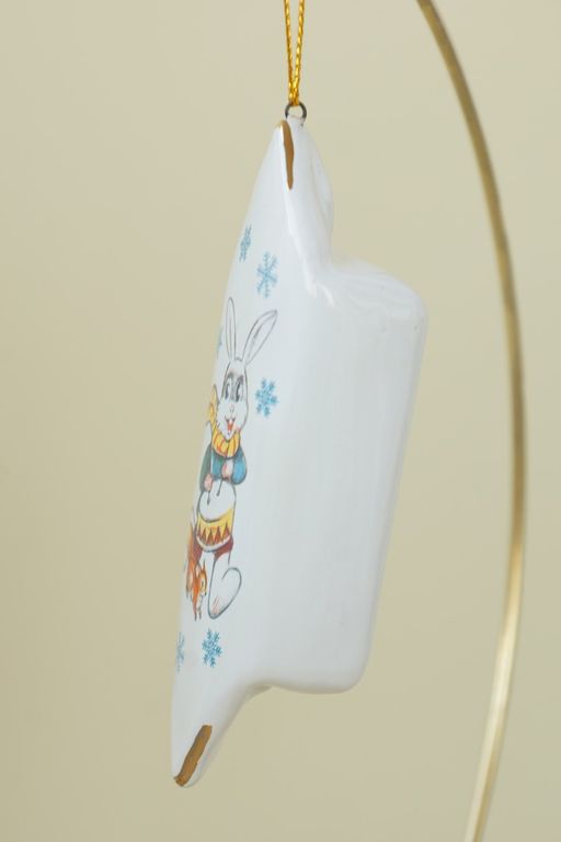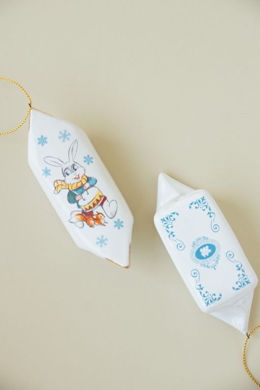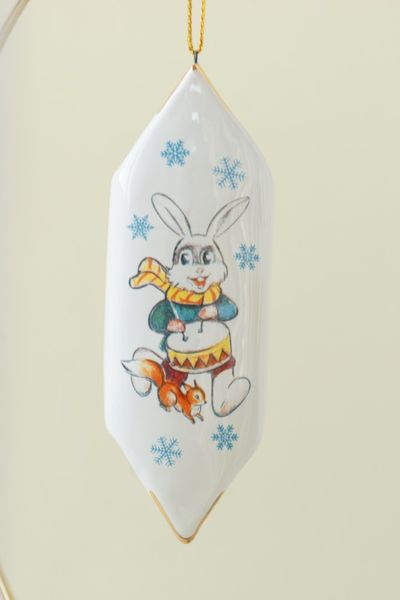 Конфетка "Зайчик с барабаном" - яркая керамическая ёлочная игрушка.