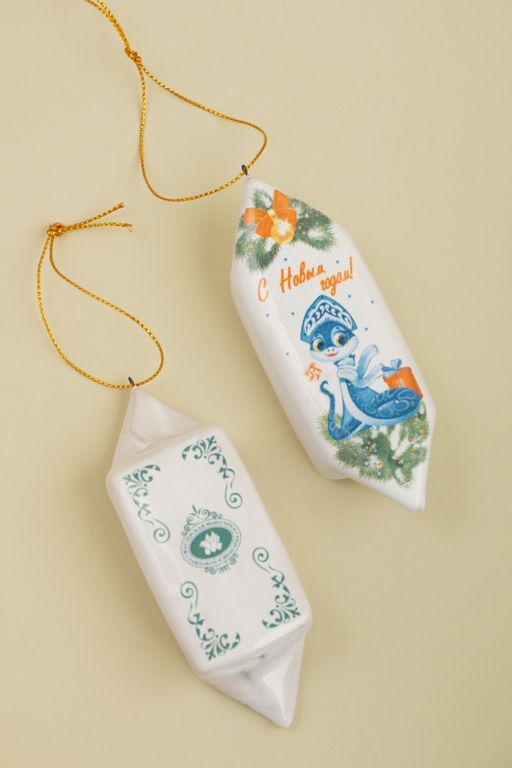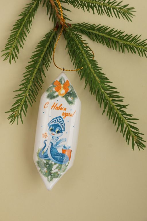 Конфетка "Змейка Снегурочка" - яркая керамическая ёлочная игрушка.