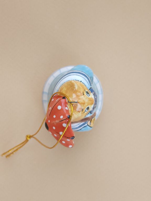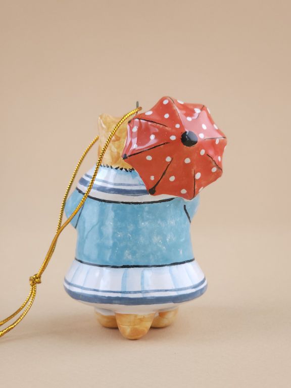 Кошечка с зонтиком - яркая красивая ёлочная игрушка.