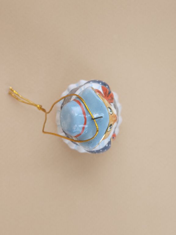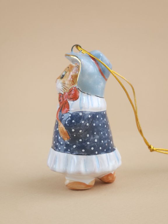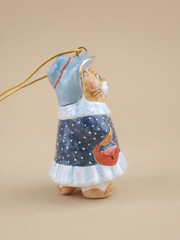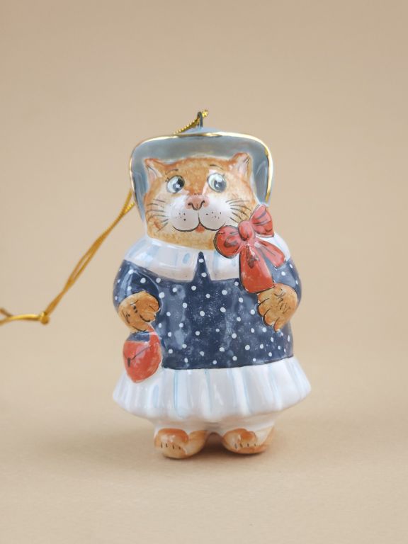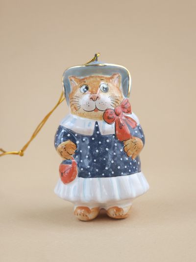 Кошечка в шляпе - яркая красивая ёлочная игрушка.