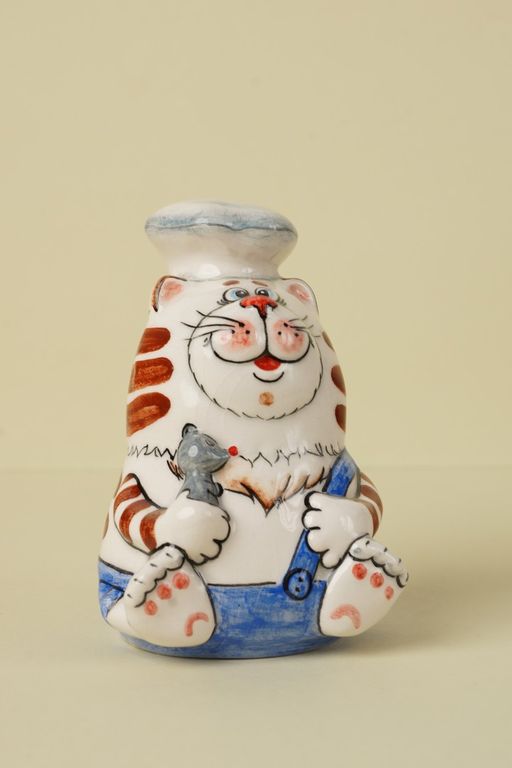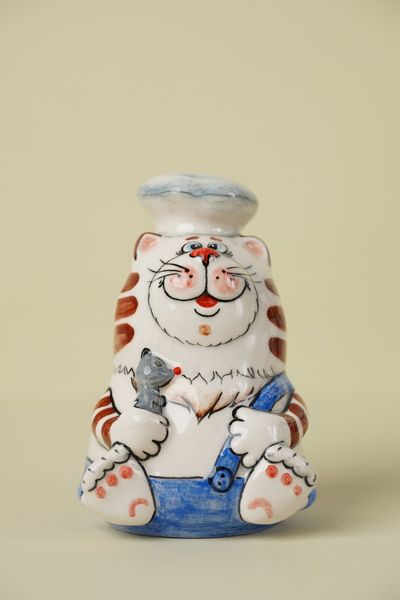 Красивая яркая майоликовая фигура кота, который любит готовить. :-)