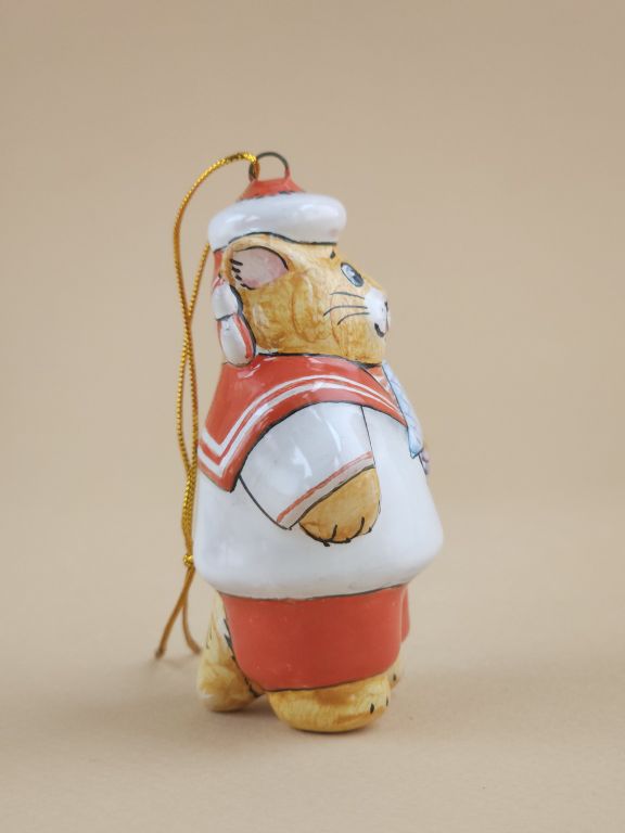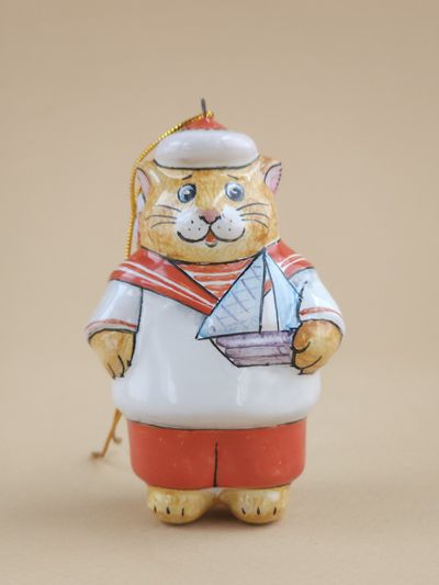 Котик с корабликом - яркая красивая ёлочная игрушка.