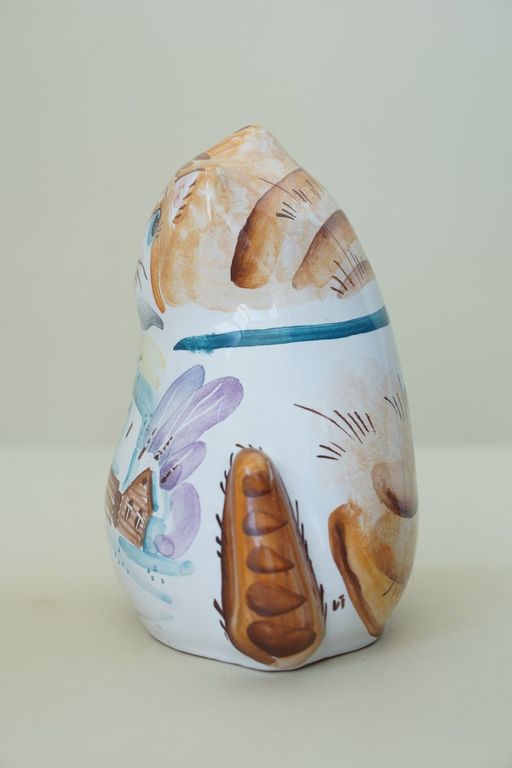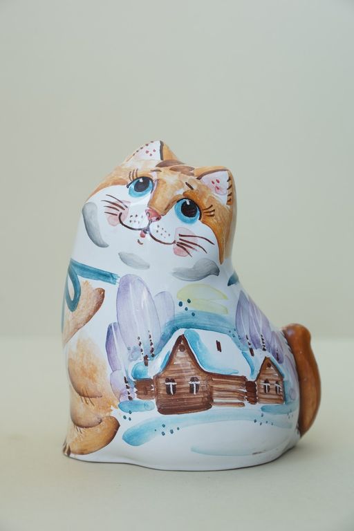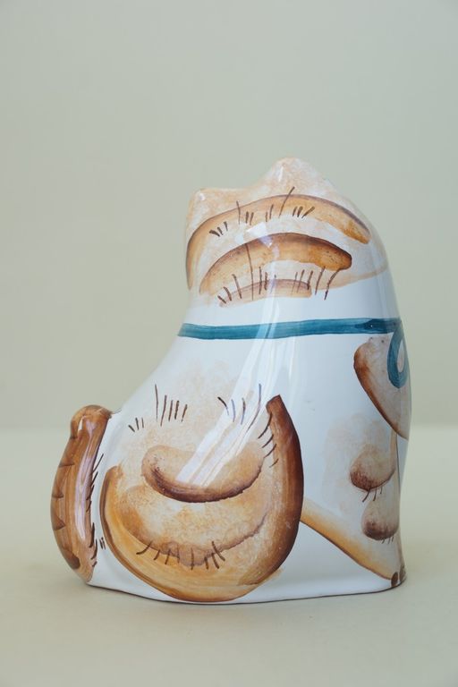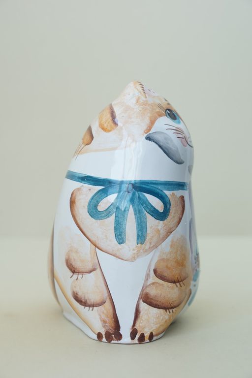 Оригинальный майоликовый колокольчик в виде толстенького котика.